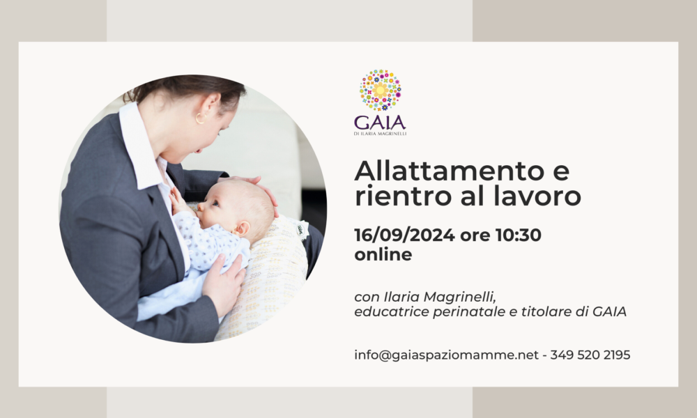 Lunedì 16 Settembre 2024 ore 10:30 online. Con Ilaria Magrinelli, educatrice perinatale e titolare di GAIA.