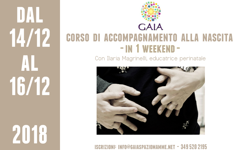 14, 15 e 16 Dicembre 2018. CORSO DI ACCOMPAGNAMENTO ALLA NASCITA IN UN WEEKEND! Da venerdì sera a domenica pomeriggio, un tempo esclusivo da dedicare all’arrivo del tuo bambino.
