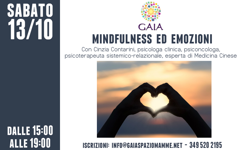 Sabato 13 Ottobre 2018 dalle ore 15:00 alle ore 19:00. Con Cinzia Contarini, psicologa clinica, psiconcologa, psicoterapeuta sistemico-relazionale, esperta di Medicina Cinese.