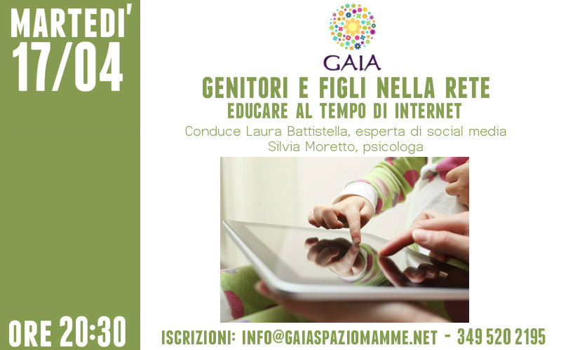 Martedì 17 aprile 2018 ore 20:30. Conducono Laura Battistella, esperta di social media e Silvia Moretto, psicologa.