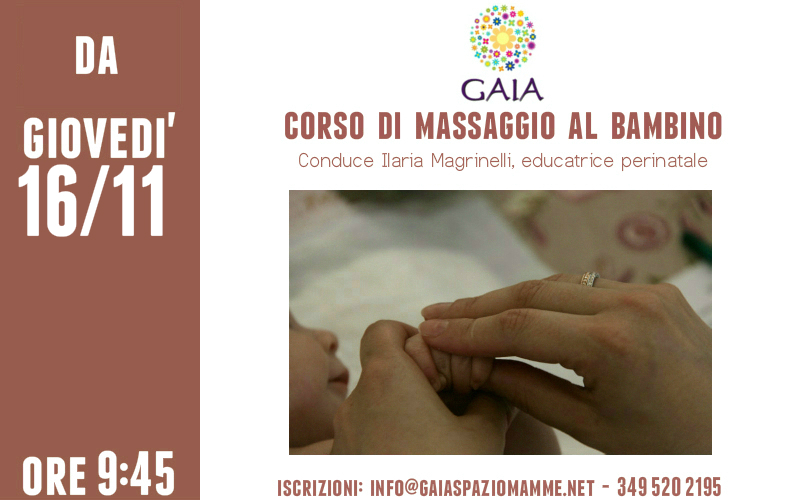 IL CORSO E’ COMPLETO! Sono già disponibili nuove date QUI 7, 29 Novembre e 13 Dicembre 2017 Orario: dalle 20:15 alle 21:45 Conduce Ilaria Magrinelli, educatrice perinatale e titolare di GAIA