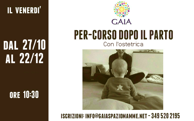 Il 27 Ottobre 2017 ore 10:30 comincia il NUOVO Per-Corso dopo il parto. Il corso è condotto da un’ostetrica. 8 incontri per riattivare la zona perineale e rimettersi in movimento. Partecipa con il tuo bambino!