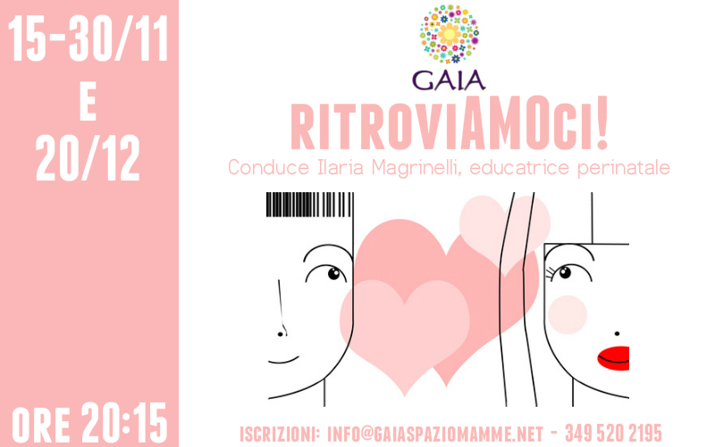 15, 30 Novembre e 20 Dicembre 2017 Orario: dalle 20:15 alle 21:45 Conduce Ilaria Magrinelli, educatrice perinatale e titolare di GAIA