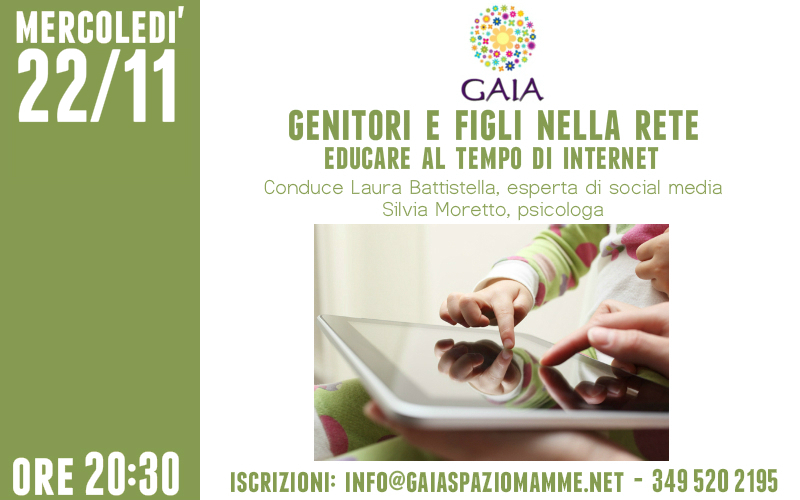 Mercoledì 22 Novembre 2017 ore 20:30. Conducono Laura Battistella, esperta di social media e Silvia Moretto, psicologa.