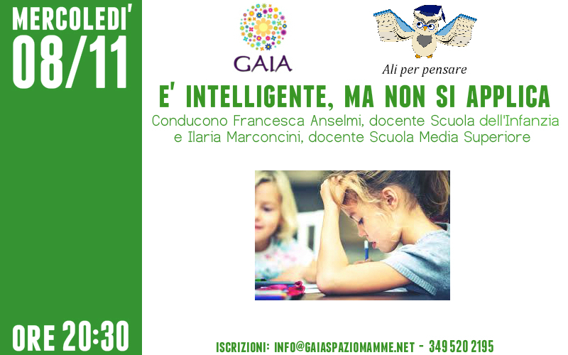 Mercoledì 8 Novembre 2017 ore 20:30. Con Francesca Anselmi, docente Scuola dell’Infanzia e Ilaria Marconcini, docente Scuola Media Superiore dell’Associazione “Ali per Pensare”