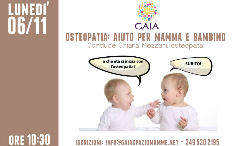 Lunedì 6 Novembre 2017 ore 10:30. Conduce Chiara Mezzari, osteopata.