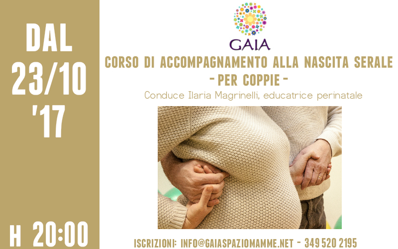 Lunedì 23 Ottobre 2017 inizia un nuovo Corso di Accompagnamento alla Nascita serale per coppie. Gli incontri iniziano alle ore 20:00.