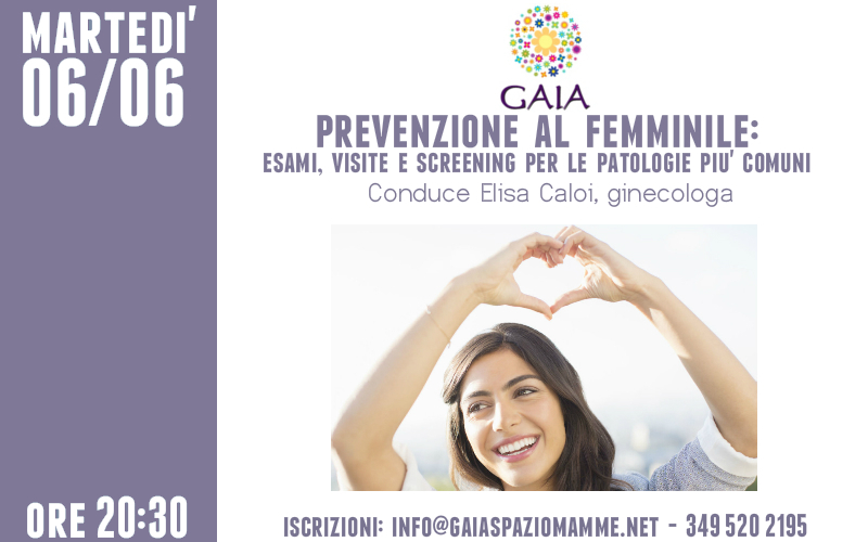Martedì 6 Giugno 2017 ore 20:30. Conduce Elisa Caloi, ginecologa.