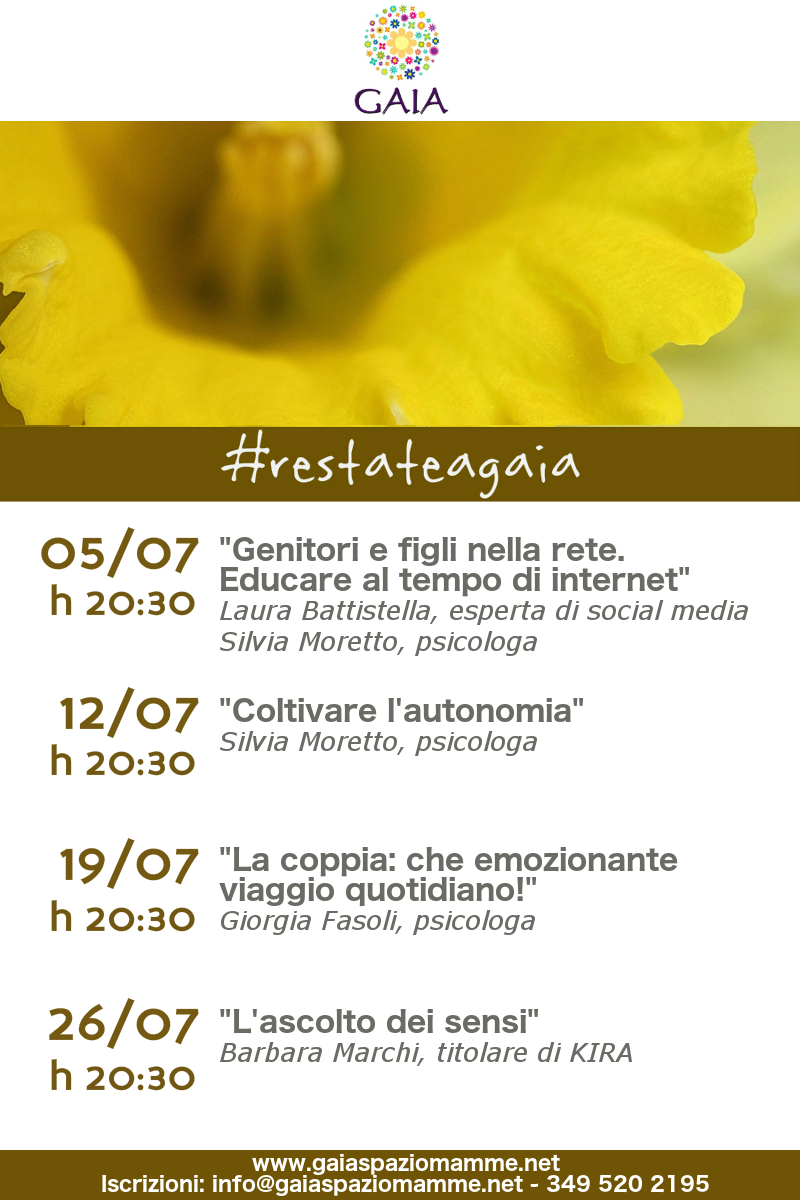 Gaia non va in vacanza e, anche quest’anno, torna con la rassegna “Restate a Gaia” nel mese di Luglio!