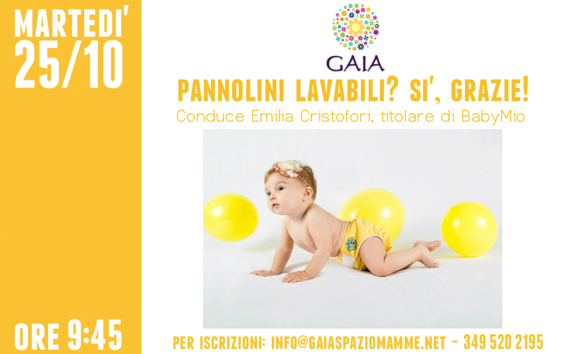 Torna a Gaia un nuovo incontro con il mondo dei pannolini lavabili! Martedì 25 Ottobre 2016 ore 9:45 Conduce Emilia Cristofori, titolare di BabyMio Incontro Gratuito!