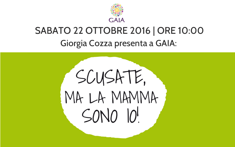 Sabato 22 ottobre 2016, ore 10:00. Conduce Giorgia Cozza, giornalista e mamma. Presenta a Gaia il suo ultimo libro: un manuale per future e neomamme che vogliono sopravvivere a una valanga di critiche e consigli non richiesti.