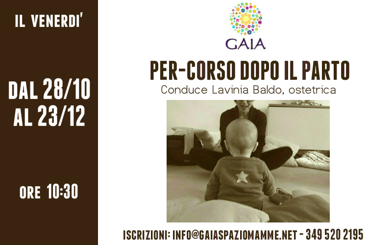 Venerdì 28 Ottobre 2016 ore 10:30 comincia il NUOVO Per-Corso dopo il parto. Conduce il corso: Lavinia Baldo, ostetrica. 10 incontri per riattivare la zona perineale e rimettersi in movimento. Partecipa con il tuo bambino!