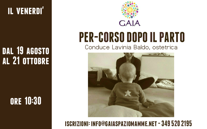 Venerdì 19 Agosto 2016 ore 10:30 ricomincia il Per-Corso dopo il parto. Conduce il corso: Lavinia Baldo, ostetrica. 10 incontri per riattivare la zona perineale e rimettersi in movimento. Partecipa con il tuo bambino!