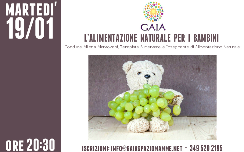 Martedì 19 gennaio ore 20:30. Conduce Milena Mantovani, Terapista Alimentare e Insegnante di Alimentazione Naturale