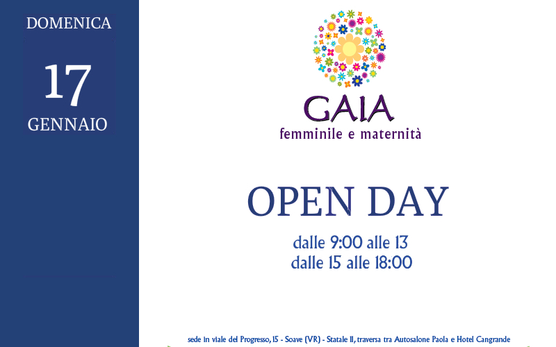 Domenica 17 gennaio 2016 dalle ore 9:00 alle ore 13 e dalle ore 15 alle 18:00, ti aspetto a Gaia con i tuoi bambini! Ti aspetto per un OPEN DAY presso la sede in Viale del Progresso, 15 SOAVE (VR).