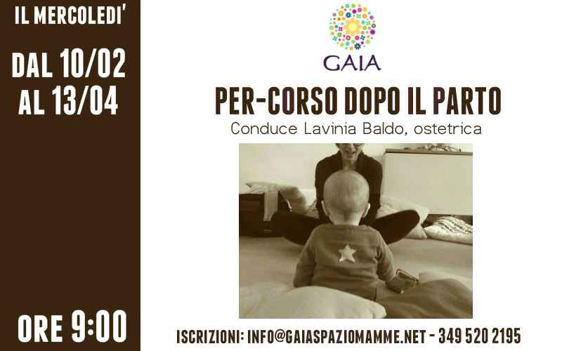 Mercoledì 10 febbraio ore 9:00 ricomincia il Per-Corso dopo il parto. Conduce il corso: Lavinia Baldo, ostetrica. 10 incontri per riattivare la zona perineale e rimettersi in movimento. Partecipa con il tuo bambino!
