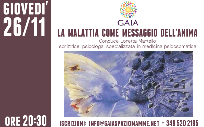 Giovedì 26 novembre 2015 ore 20:30 Conduce Loretta Martello, scrittrice, psicologa, specializzata in medicina psicosomatica, conduce percorsi individuali e di gruppo ispirandosi alla Scienza dello Spirito di Rudolf Steiner.