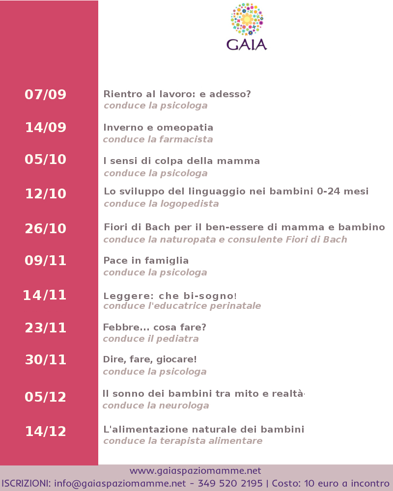 Gaia non va in vacanza! 6 mercoledì sera con 6 esperte diverse da fine giugno a fine luglio. Partecipa anche tu agli eventi del mese dedicati al femminile. Su Facebook segui l’hashtag #rEstateagaia per restare aggiornata su tutte le iniziative organizzate dalle ...