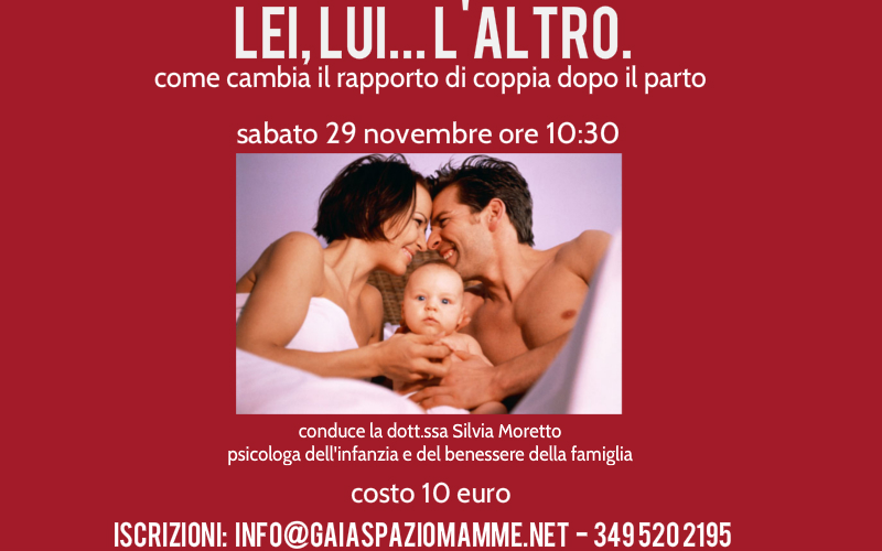 Sabato 29 novembre ore 10:30 Conduce l’incontro la dott.ssa Silvia Moretto, psicologa dell’infanzia e del benessere della famiglia.