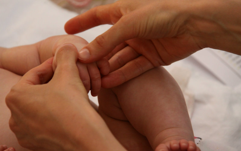 Insieme all’olio che scivola sulla pelle del bambino, durante gli incontri scivolano via anche le preoccupazioni, grazie al confronto in cerchio con altre mamme.