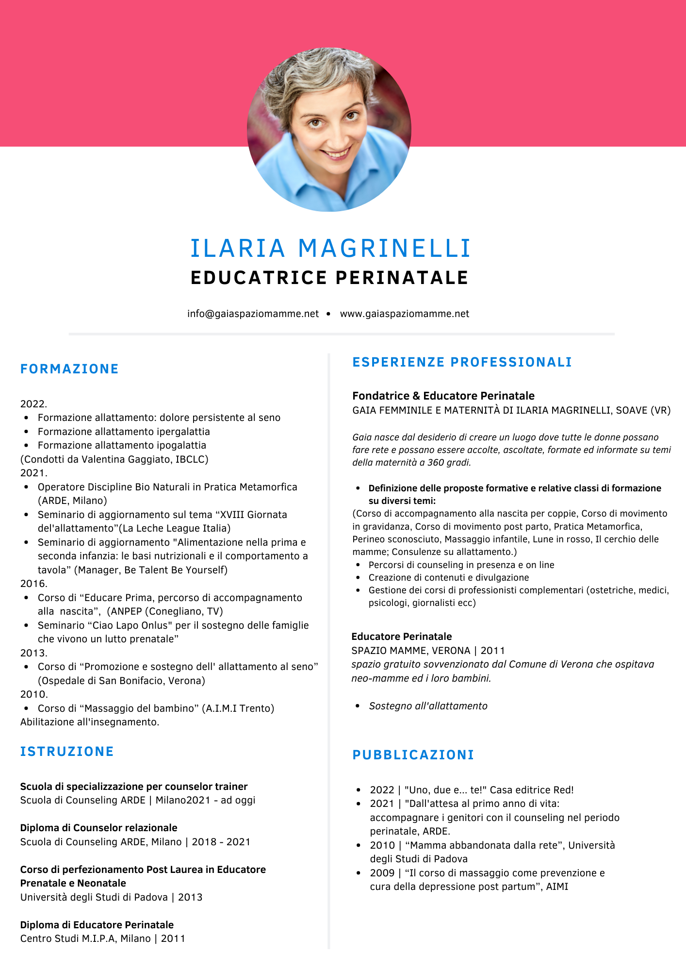 Sono Ilaria Magrinelli, educatrice perinatale, counselor relazionale e insegnante di massaggio infantile.