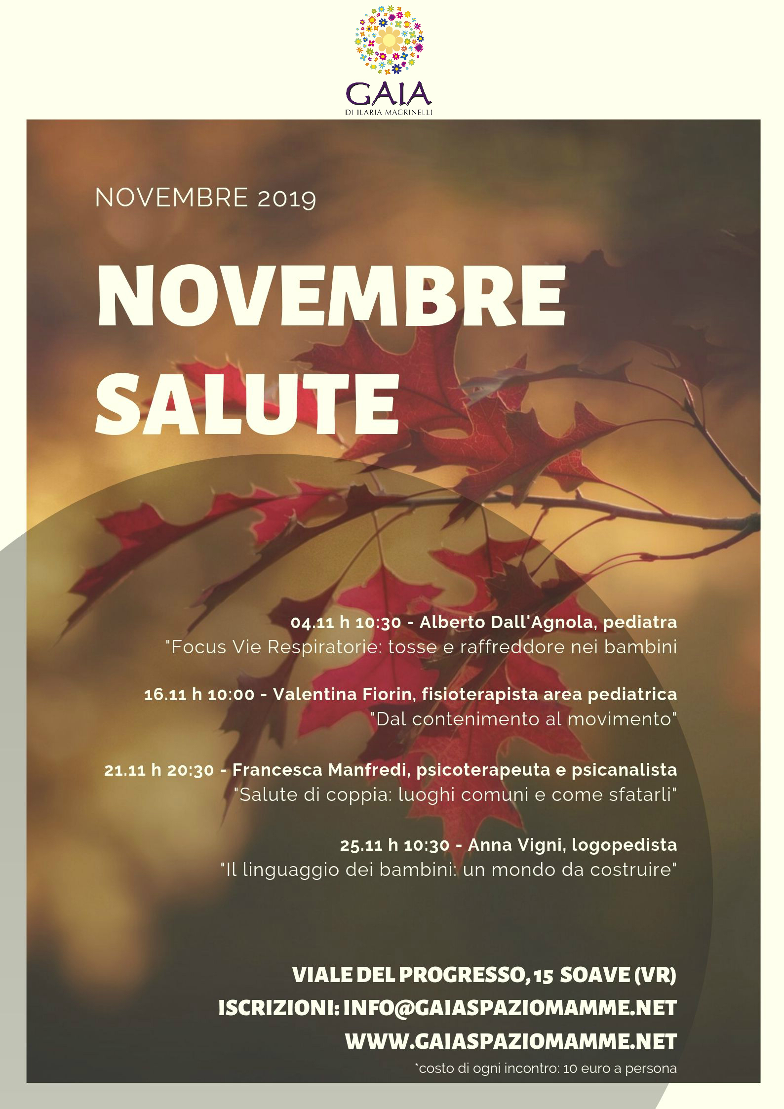 Su Facebook segui l’hashtag #novembresalute per restare aggiornat* sugli incontri della rassegna che si svolgerà presso GAIA a Soave (Verona) durante il mese di Novembre 2019.