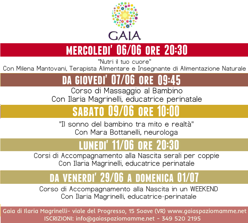 Il calendario di incontri e corsi per il mese di giugno 2018 a GAIA.